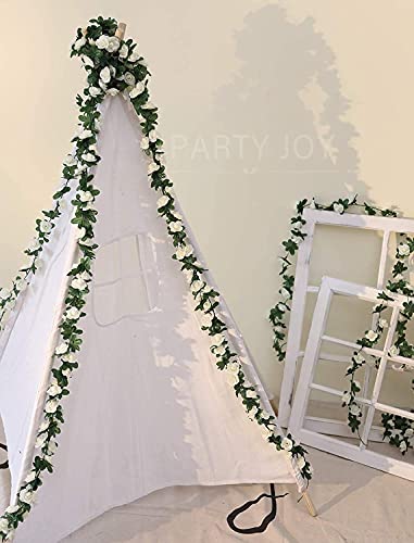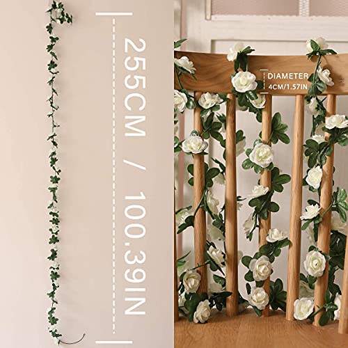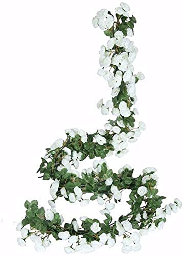 Ancokig Ghirlanda di fiori finti a forma di rosa rampicante, 4 pezzi, fiori artificiali, da appendere a forma di rosa e edera, per matrimoni, arco, sfondo da giardino (bianca)