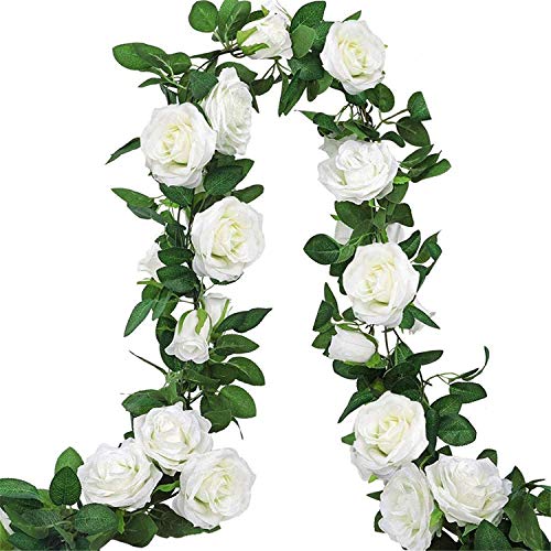 Ancokig Ghirlanda di Rosa Artificiali Fiori di Seta Vite Finta Sospeso Rose Edera Piante per Nozze Casa Ufficio Arco Preparativi Decorazione (Bianca,2 Pezzi-9 Fiori)