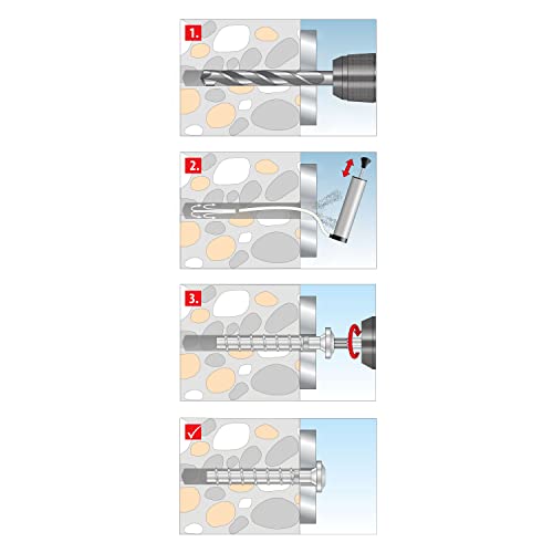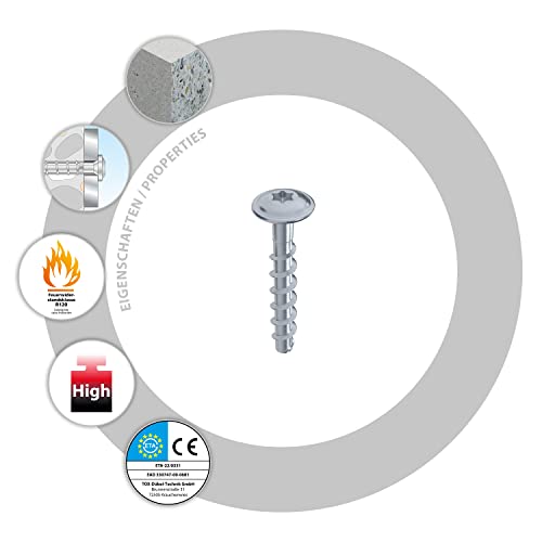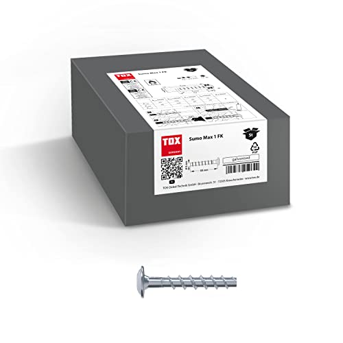 TOX Ancoraggio a vite Sumo Max 1 FK 6x50 mm, testa piatta, acciaio zincato, approvato dalle autorità edilizie per il fissaggio multiplo di componenti non portanti, 100 pezzi, 041101661