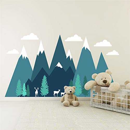 Ancoree Cartone Animato Bella Colline Modello Grande Adesivi da Parete per Bambini Nursery Camera da Letto Murali del Muro di Gables Rimovibile Auto-Adesivo Montagne Motivo Carta da Parati (A)