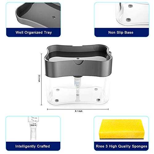 【DESIGN INNOVATIVO】Il design tradizionale richiede due mani per estrarre il detersivo. Questo nuovo design contiene una spugna, un vassoio e un distributore di sapone. L'utente può utilizzare una mano per premere il detersivo e metterlo in un posto conveniente mantenendo l'acqua Non scorre sul tavolo della cucina;