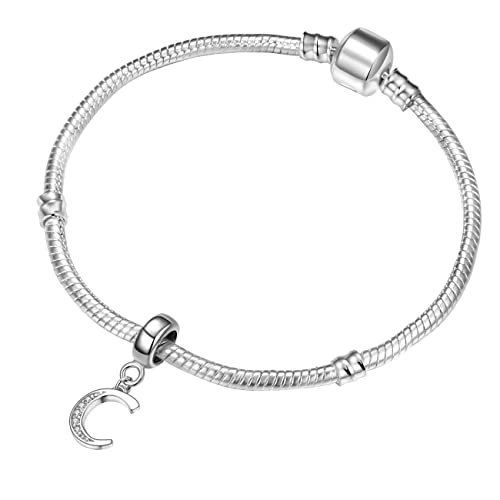Andante-Stones Argento Massiccio Sterling 925 Charm Pendenti Alfabeto C con zirconi Luccicanti CZ Ciondolo da Donna Charm Bead per bracciali e collane Europei+ Sacchetto di Organza