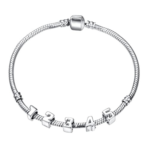 Andante-Stones Argento Massiccio Sterling 925 Originale Perlina Bead Numeri 3" Ciondolo da Donna Charm per bracciali e collane Europei + Sacchetto di Organza