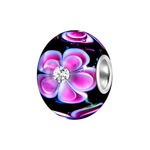 Andante-Stones Argento massiccio Sterling 925 originale Vetro Perlina Bead VITA MARINA color blu scuro bacca zircone elemento pallina per European Beads + sacchetto di organza