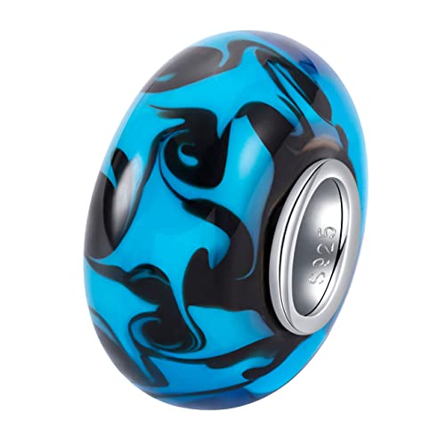 Andante-Stones Argento Massiccio Sterling 925 Originale e Vetro di Murano Perlina Bead Color Nero Ciano Ciondolo da Donna Charm per bracciali Europei + Sacchetto di Organza