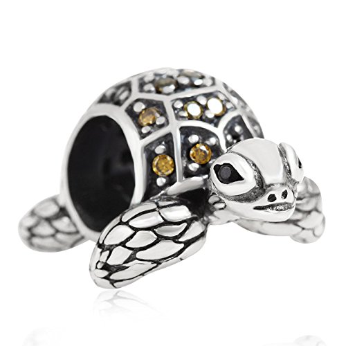 Andante-Stones Ciondolo in argento Sterling 925 a forma di tartaruga con zirconi verdi, con zirconia cubica CZ, elemento a sfera per braccialetto e sacchettino in organza