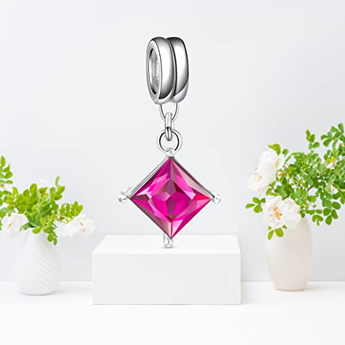 Andante-Stones 925 Perlina d'Argento Charm Pendenti Quadro con cristallini Che brillano (Fucsia) Ciondolo da Donna Charm Bead per bracciali e collane Europei + Sacchetto di Organza