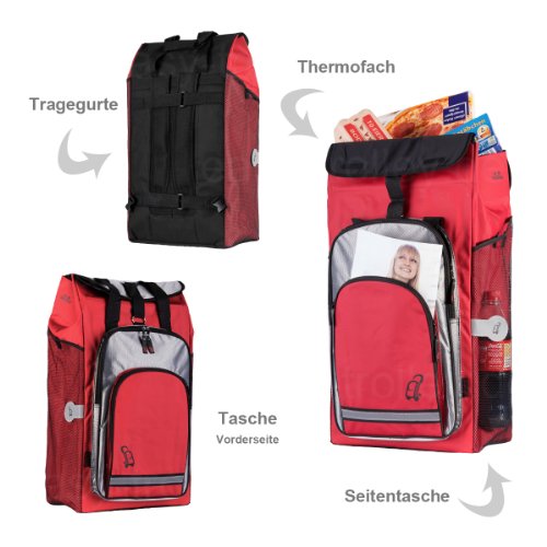 Andersen Carrello portaspesa Quattro con borsa Hydro rossa, capienza di 60L, Scomparto termico, telaio in acciaio con 4 ruote