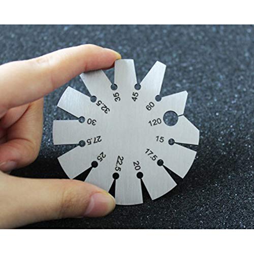 Dispone di 12 angoli comuni da 15 Grado a 120 Grado. Misura 15 Grado, 17,5 Grado, 20 Grado, 22,5 Grado, 25 Grado, 27,5 Grado, 30 Grado, 35 Grado, 32,5 Grado, 35 Grado, 45 Grado, 60 Grado e 120 Grado.