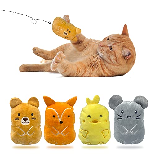 Andiker Giocattoli con erba gatta 4 pezzi simpatici giocattoli di peluche di Natale per gatti con erba gatta | giocattolo da masticare (motivo animale)