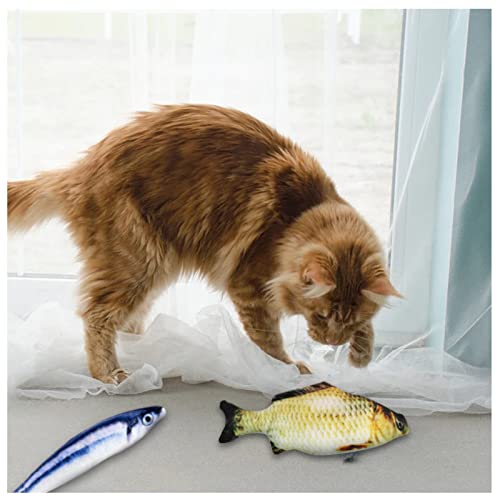 Andiker Pesce Giocattolo Gioco per Gatto, 2pcs peluche interattivi giocattoli per gatti simulazione pesce erba gatta giocattoli da masticare simpatico gatto giocattoli divertenti (Crucian + saury)