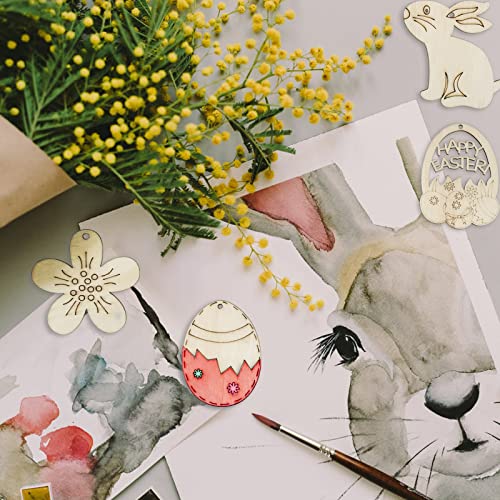 Andiker 40 Pezzi Pendente Pasquale in Legno, Non finiti Ornamenti Uovo di Pasqua Coniglio Pulcino Fiore, Artigianato Pasquale Fai da Te