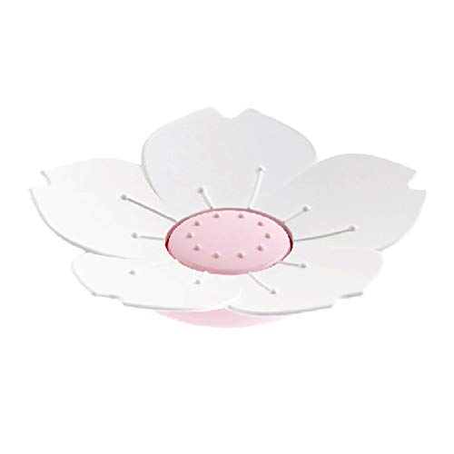 Andiker Portasapone con Scarico, Porta Sapone a Forma di Fiori in Plastica, Scatola di Sapone per Bagno, Cucina, Accessorio da Bagno per Spugna di Sapone (Bianco)