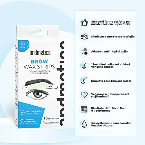 Andmetics BROW wax strips: sopracciglia brevettata cera fredda depilazione strisce, forma perfetta per modellare, cera, tintura (stencil), senza pelare le sopracciglia.