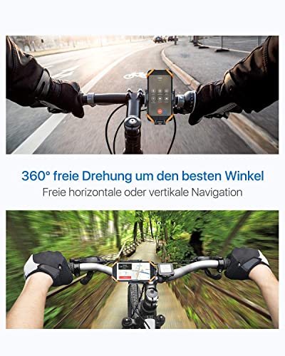 [Stabile come mai] Il supporto per cellulare da bicicletta ha superato il test di durezza secondo gli standard militari e dispone di un nuovo collo a clip migliorato. Con cuscinetti in gomma antiscivolo, un supporto stabile e gli elastici migliorati, dà al telefono una presa salda per una guida sicura. Mantiene il telefono saldamente nel supporto, anche quando si guida su terreni o su ciottoli.