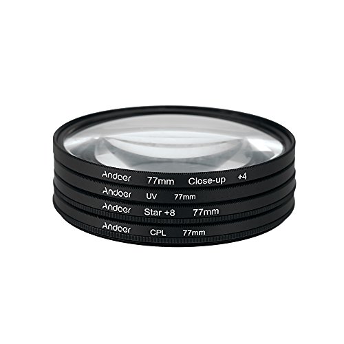 Andoer 77mm UV+CPL+Close-Up+4 +Star 8-Point Filtro Circolare Kit filtro Polarizzatore circolare Filtro Macro Close-up Stella 8-Point filtro con il Sacchetto per Nikon Canon Pentax Sony DSLR