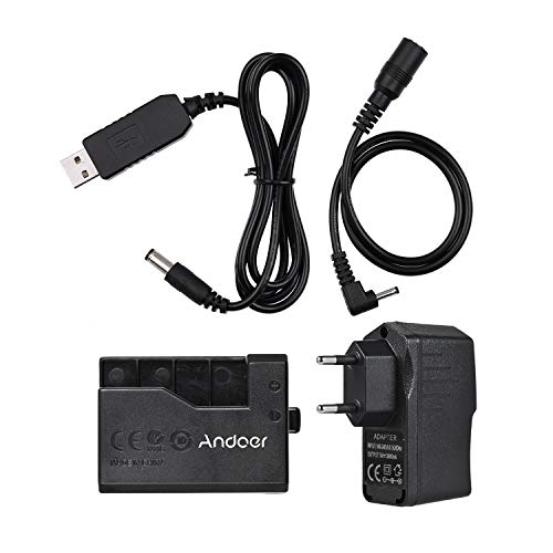 Andoer ACK-E10 - Accoppiatore di corrente continua 5 V USB (ricambio per LP-E10) con alimentatore di rete compatibile con Canon EOS Rebel T3/T5/T6/T7/T100/Kuss X50/Kuss X70/1100D/1200D/1300D/2000D/400D