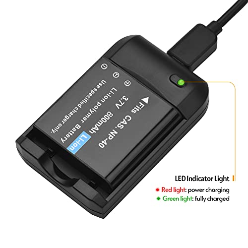 Andoer Caricabatteria NP-40 con spia LED + 2 batterie NP-40 3.7V 800mAh con cavo di ricarica USB