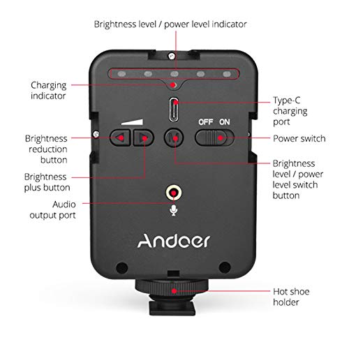 Andoer Mini LED Luce Video Microphones VideoMicro su videocamera, Dimmerabile 6500 K Luce LED Fotografiaper Smartphone Telecamera, Pocket Vlog Light con microfono per Youtube,Tiktok, Registrazione