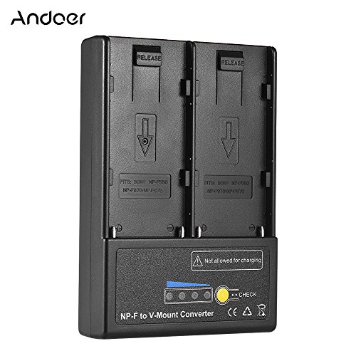 Andoer Piastra adattatore convertitore batteria da NP-F a V-mount con slot doppio per NP-F550 NP-F750 NP-F970 Serie