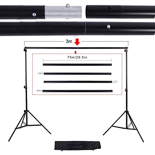 Questo set contiene softbox ottagonali, stativi luci e stativo a giraffa, supporto fondale, fondale, lampade, morsetti e borsa per il trasporto.