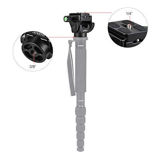 Andoer Testa monopiede, M-12 monopiede testa inclinabile testa panoramica teleobiettivo bird watching con 2 pezzi piastra a sgancio rapido