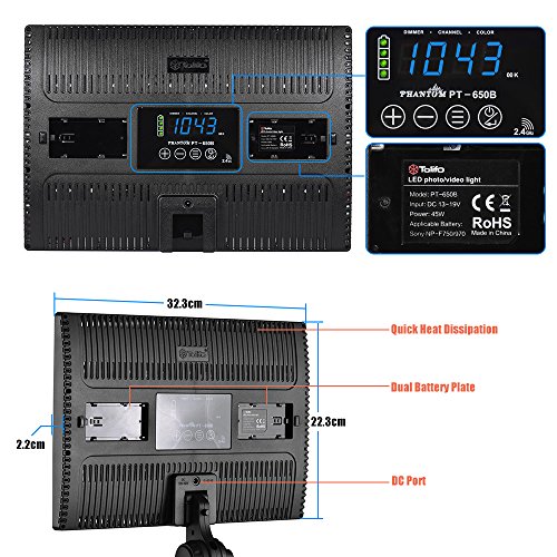 Andoer Tolifo Phantom PT-650B Slim Bi-colore 3200K ~ 5600K Dimmerabili 432pcs della Luce della Lampada Video a LED Photo Studio Pannello w / Telecomando + Handle