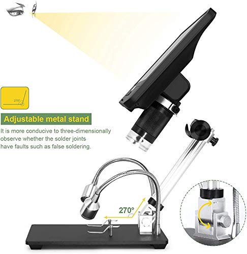Luci LED regolabili: il microscopio viene fornito con due luci di riempimento regolabili incorporate, che consentono di regolare la luminosità e la luminosità e rende l'immagine e il video più chiari.