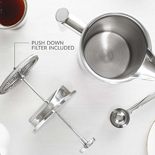 Andrew James - Caffettiera termica in acciaio INOX, 350 ml, con cucchiaio di misurazione con manico a clip salva-freschezza (per pacchetto), in confezione regalo Acciaio inossidabile 304 di alta qualità.