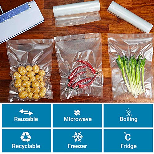 Andrew James, Sacchetti sottovuoto per Alimenti, 2 Rotoli da 28 cm x 5 m, riutilizzabili, Lavabili in lavastoviglie e Utilizzabili in microonde