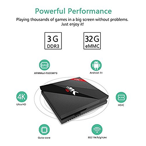 TV Box Android 7.1 - Aoxun H96 Smart TV Box [2018 Ultima Generazione] Amlogic S912W Octa-core, 3GB RAM & 32GB ROM, Video 4K UHD H.265, 2 Porte USB, HDMI, WiFi Web Dual Band e Bluetooth 4.1 TV Box