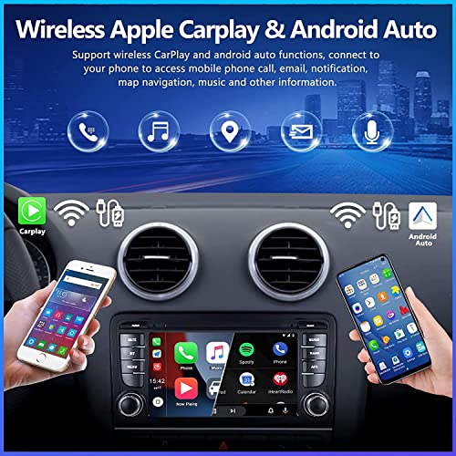 Android 11 Autoradio per Audi A3 S3 RS3 2003-2012 con Wireless Carplay/Android Auto, Schermo 7 Pollici Doppia Radio Din Radio con vivavoce Bluetooth FM/RDS Radio HIFI Mirror Link Fotocamera Posteriore