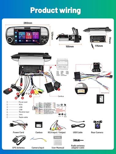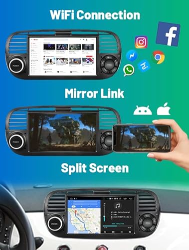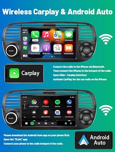 [Wireless Carplay & Android Auto per Fiat 500]: Integrato wireless carplay e apple carplay cablato, wireless Android Auto e Android Auto cablato, supporta connessioni Bluetooth e WiFi (Hotspot) complete e connessione con cavo dati USB