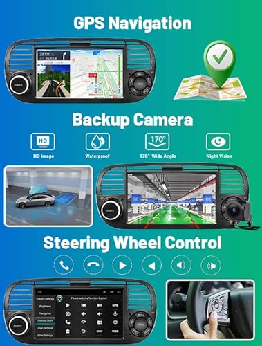 Android 11 Autoradio per Fiat 500 (2007-2015) con Carplay Wireless Android Auto: RDS Autoradio 7 Pollici per Stereo Fiat 500 Radio con Schermo Supporto GPS WiFi Bluetooth SWC Retrocamera Auto