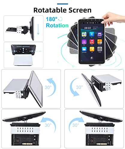 【Autoradio Android 1 Din Ruotabile da 10 Pollici】 Questa autoradio con touch screen in vetro temperato a specchio 2.5D ad alta definizione da 10 pollici può essere ruotata di 180°. Fornisci l'esperienza visiva e tattile più confortevole possibile. Le dimensioni di installazione dell'autoradio universale 1 din sono: 178 * 50 * 145 mm. La dimensione dello schermo è 260*155*11 mm.