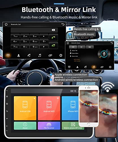 【Collegamento specchio Android/iOS e Telecamera Posteriore】 Supporto per car radio Connessione specchio telefono Android (10.0 e precedenti)/iOS (13.4 e precedenti). L'lettore multimediale per auto è dotata di una telecamera posteriore impermeabile ad alta definizione per la visione notturna, quando si inserisce la retromarcia, lo schermo stereo visualizzerà automaticamente l'immagine della retromarcia per garantire la vostra sicurezza.
