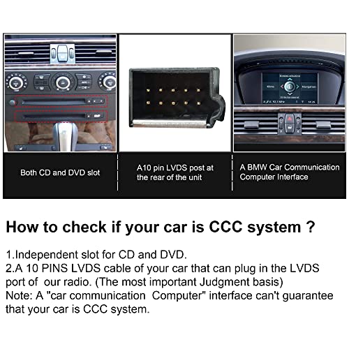 Modelli di auto compatibili: Per BMW Serie 3 E90 E91 E92 E93, per BMW Serie 5 E60 E61 E63 E64 (2005 2006 2007 2008) Sistema CCC con AUX. Assicurarsi che nella propria auto sia presente un cavo LVDS a 10 PIN compatibile con la porta LVDS della radio.