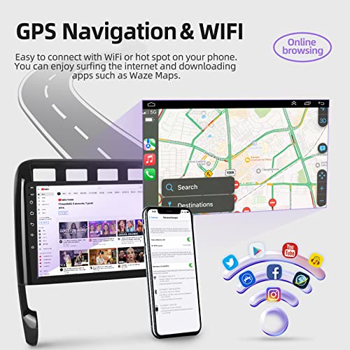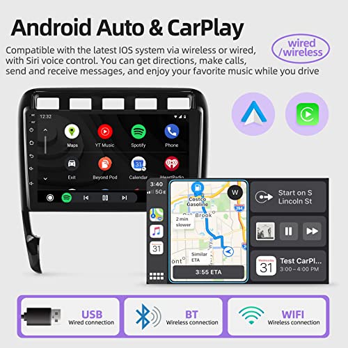 【Wireless e cablato Carplay & Android Auto】 Supporto radio Porsche Cayenne Apple Carplay e Android Auto, compatibile con l'ultimo sistema IOS tramite wireless o cablato, con controllo vocale Siri. Puoi ottenere indicazioni stradali, effettuare chiamate, inviare e ricevere messaggi e goderti la tua musica preferita mentre guidi