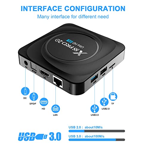 [Chipset Android 11.0 OS e RK3566] UPGLICE X88 PRO 20 Aggiorna il sistema operativo Android 11.0 più recente e più forte del chipset quad-core RK3566, rende la tua scatola TV Android più stabile affidabile e più intelligente con una velocità di marcia più veloce, una migliore compatibilità diSoftware, giochi e ultime applicazioni Android rispetto ad altre scatole TV sul mercato.