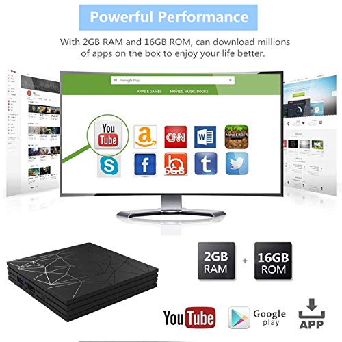 Android 9.0 TV Box, Smart Box Lettore Multimediale Box 2GB RAM 16GB ROM H6 Quad-Core Cortex-A53 2.4GHz WiFi Supporto 3D 6K H.265 10/100M Ethernet HDMI con Remote Control Video Player