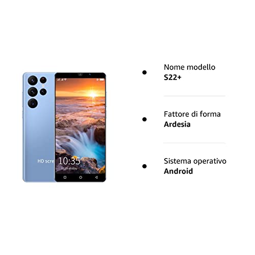 Android Smartphones, Dual Sim Mobile phone, 5.0 Inch Quad-Core 4GB ROM, Dual Cameras, Bluetooth, GPS, Wifi Cell Phones (S22+ Blue)