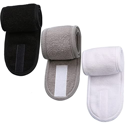 Androxeda 3 Pezzi Fascia Spugna Makeup Fascia Capelli Spugna Trucco Fascia Capelli Donna Trucco Regolabile Spa Fascia Capelli Terry Trucco Doccia Yoga Sport Spa con Magic Tape(Bianco Nero Grigio)