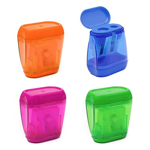 Androxeda Set di 4 temperamatite temperamatite con doppio foro colorato per scuola, ufficio, forniture domestiche e molto altro ancora
