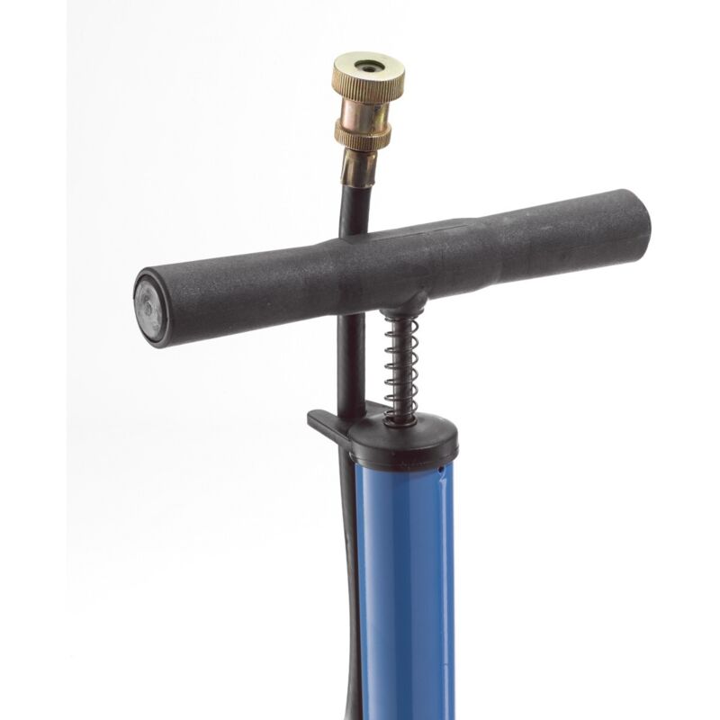 Pompa con base, con raccordo a pressione ottonato, che gonfia fino a 4 bar/60 psi. Il tubo è realizzato in acciaio, il manico in plastica ed il raccordo a pressione è ottonato. Dettagli Prodotto: pompa con base;