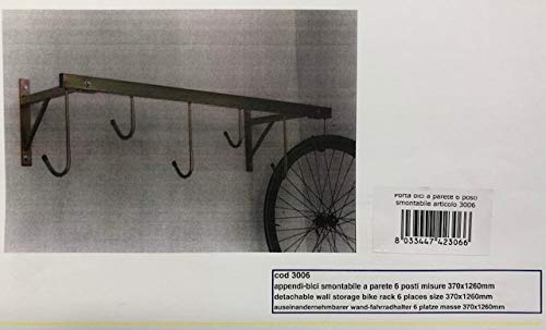 ANDRYS - Porta Biciclette a Parete a Esterni e Interni Smontabile, con Staffa di Fissaggio e Tubo Frontale, con Viti e Tappi in Pvc Neri, in Acciaio Zincato, Colore Tropical Oro, 126 x 37 x 30 cm, 6 Posti, portata massima 15/18 kg per gancio