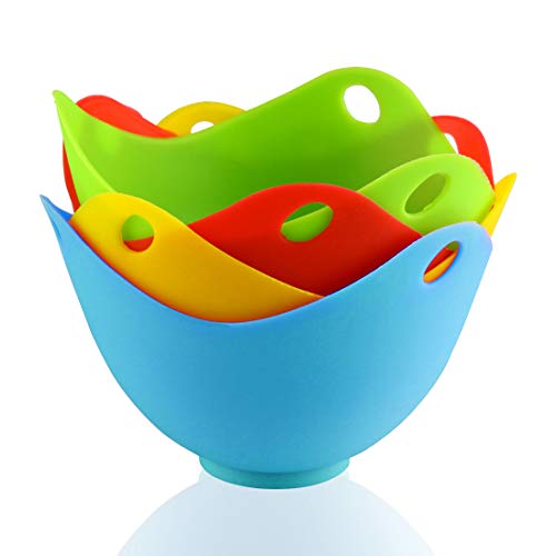 Andux Bracconiere per Uova Set di 4 uUova in Camicia Perfette per Cucinare ZDQ-02 (Rosso, Giallo, Verde, Blu)
