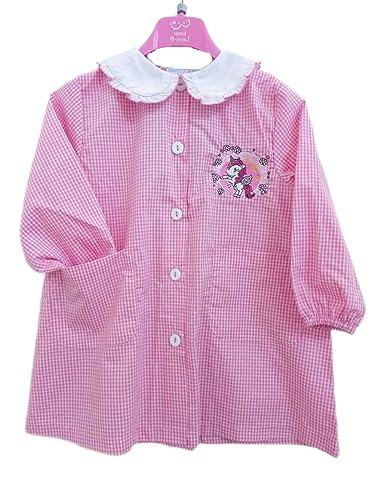 Andy&Giò Grembiule Asilo Bambina 90210 Ricamo Unicorno quadretto Rosa/Bianco (5 Anni)