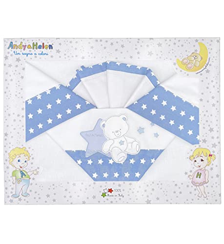 Andy & Helen Completo lenzuolo culla/carrozzina ricamato + sotto con elastici e federa, Cielo
