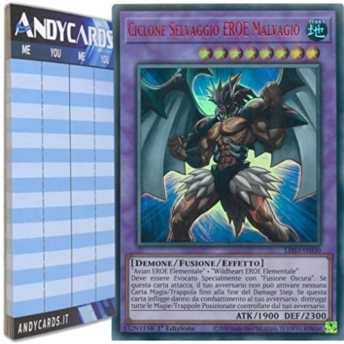 Andycards Yu-Gi-Oh! - CICLONE SELVAGGIO EROE MALVAGIO - Ultra Rara Rossa LDS3-IT030 in ITALIANO + Segnapunti