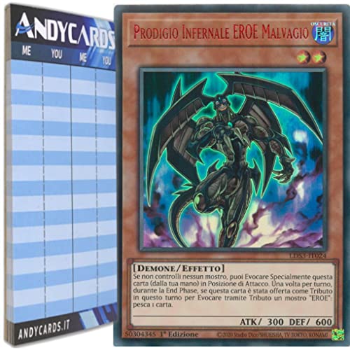 Andycards Yu-Gi-Oh! - PRODIGIO INFERNALE EROE MALVAGIO - Ultra Rara Rossa LDS3-IT024 in ITALIANO + Segnapunti